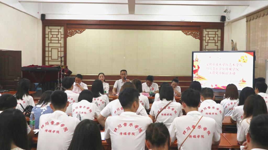 5月11日,艺术学院联谊四川音乐学院传媒学院在国学馆开展了“学党史.忆小平.传承革命精神”主题党日活动。学校党委委员、副校长袁祖洪,艺术学院院长杨小锋,四川音乐学院传媒学院党总支书记、院长包德述,四川音乐学院传媒学院党总副书记刘莉及两校部分党员老师和预备党员学生参加了活动,活动由艺术学院党总支书记杨书琴主持。