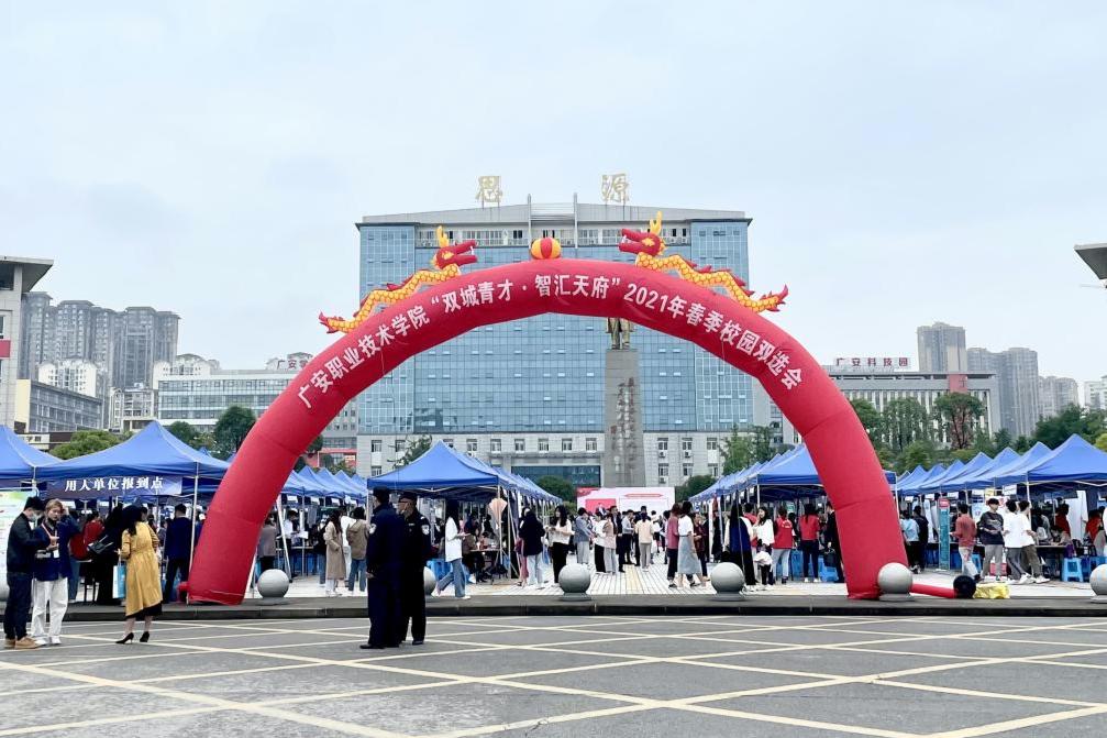 5月25日,“双城青才·智汇天府”2021年春季校园双选会活动于在学校滨江校区和奎阁校区同时举行。2021届毕业生及广安市毕业未就业学生共8000余人参加了活动。