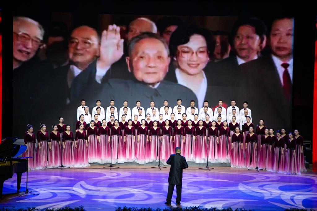 比赛在女生独唱《唱支山歌给党听》中拉开帷幕。随后,《没有共产党就没有新中国》《保卫黄河》《赞歌献给党》《在灿烂的阳光下》《旗帜颂》……一首首镌刻着时代印记的红色经典歌曲悠扬婉转。在激烈的比赛中,学校教职工合唱队深情演绎的《永远的小平》以热情饱满的情绪、稳重大方的仪态,娴熟精湛的合唱技巧,以9.88全场最高分从全场17支队伍中脱颖而出,荣获比赛一等奖。