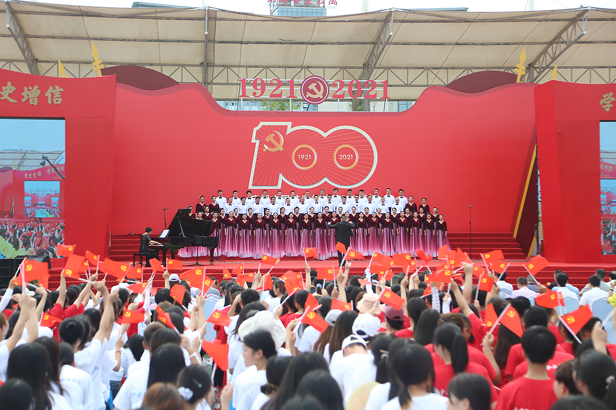 “万水千山不忘来时路,鲜血浇灌出花开的国度”、“唱支山歌给党听,我把党来比母亲”……6月21日,飞扬的歌声从医学院体育场传出,学校“永远跟你走——庆祝中国共产党成立100周年合唱比赛”在奎阁校区精彩上演。来自各二级学院、广安技师学院、华泰医院等10支队伍轮番登台、深情演绎,唱响了爱党爱国爱社会主义的时代主旋律。