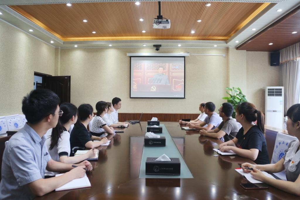 上午8时,学校全体中心组成员在春晖楼四楼会议室集体收看学习了大会直播。按照学校统一安排,校党委各直属党组织、校属各单位安排广大师生在教室、会议室、办公室等场地,通过LED屏、电脑、电视、手机等多种媒体形式观看大会,聆听讲话。全校师生为中国共产党成立100年来取得的巨大成就欢欣鼓舞,并在收看结束后纷纷发表感言,畅谈对习近平总书记重要讲话的感想与体会。