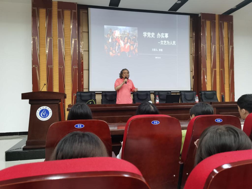 9月13日,学校高级顾问、省教育厅原副巡视员、省文联原副主席、摄影艺术家林强在学校希贤厅为艺术学院2021级新生作题为《学党史,办实事——文艺为人民》主题讲座。