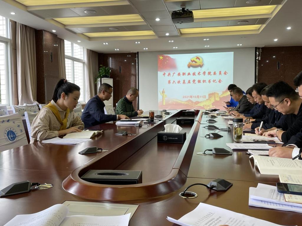 会上集中学习了《习近平新时代中国特色社会主义思想三十讲》第十九讲-建设具有强大凝聚力和引领力的社会主义意识形态、全省高校党的建设工作会议精神以及学校党委《关于选举出席中国共产党广安市第六次代表大会代表的工作方案》,并对代表推选工作进行了详细的安排部署。
