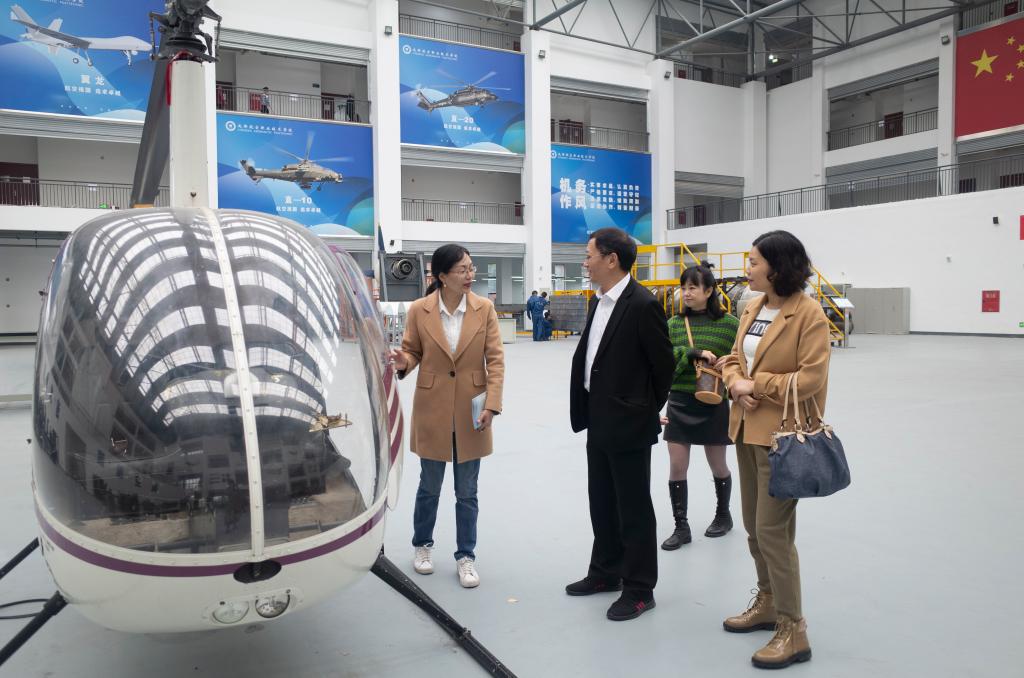 会前,成都航院工会常务副主席、离退休工作处处长刘洁陪同王甫茂一行参观了学院职工之家、教师休息室等教职工生活特色服务平台,以及学院飞机维护维修实训基地、海克斯康-几何计量技术协同创新中心、GF加工方案智能制造创新基地等地。