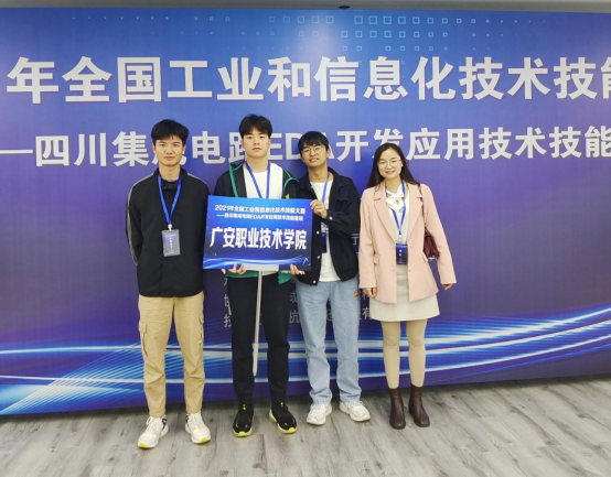10月22至23日,2021四川省工业和信息化技术技能大赛——集成电路EDA开发应用在成都举办,kaiyun官网电子与信息工程学院2019级应用电子技术2班学生秦鹏程、刘阳生、张涛于组成的参赛队伍在本次赛项中喜获团体二等奖(二等奖第一名)。