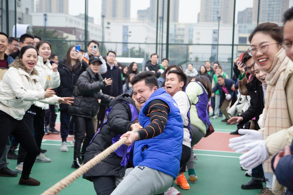 活动中,王义全与教师为大家带来了一场精彩的网球表演赛,为落实全民健身国家战略起到了很好的表率引领作用。之后,趣味网球活动与拔河比赛同时进行,趣味网球轻松愉悦,笑声连连;拔河赛场气氛异常激烈,队员都铆足了劲,加油声、哨子声、欢呼声此起彼伏,将活动推向高潮。展现了广职人积极向上、顽强拼搏的运动精神,增强了学校教职工的集体凝聚力。