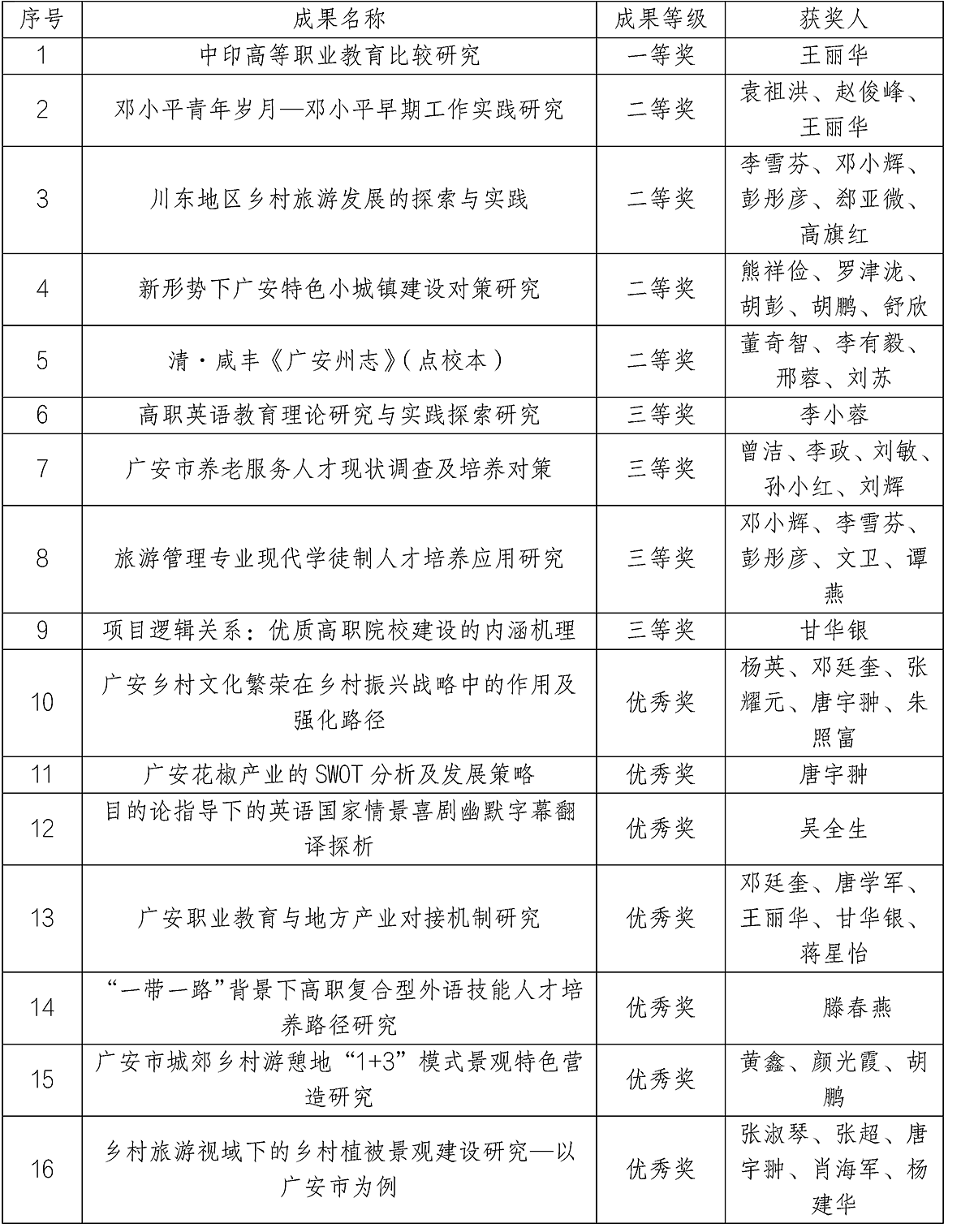 2月23日,广安市人民政府发布《关于广安市第十次社会科学优秀成果的通报》(广安府发〔2022〕5号),表彰了广安市第十次社会科学优秀成果获奖。此次获奖名单中kaiyun官网共有16项成果获奖,其中一等奖1项、二等奖4项、三等奖4项和优秀奖7项,获奖数位居全市榜首。
