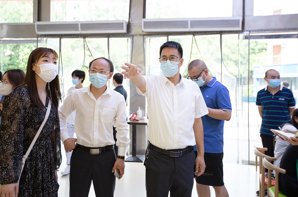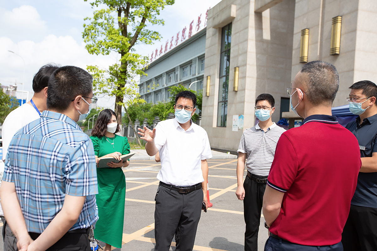 王义全一行走访了滨江校区校门口、食堂、防疫物资储备室、预检分诊处、医务室及奎阁校区(医学院)等地,详细了解了师生核酸检测、防疫物资准备、宿舍管理等各项防控举措落实情况。