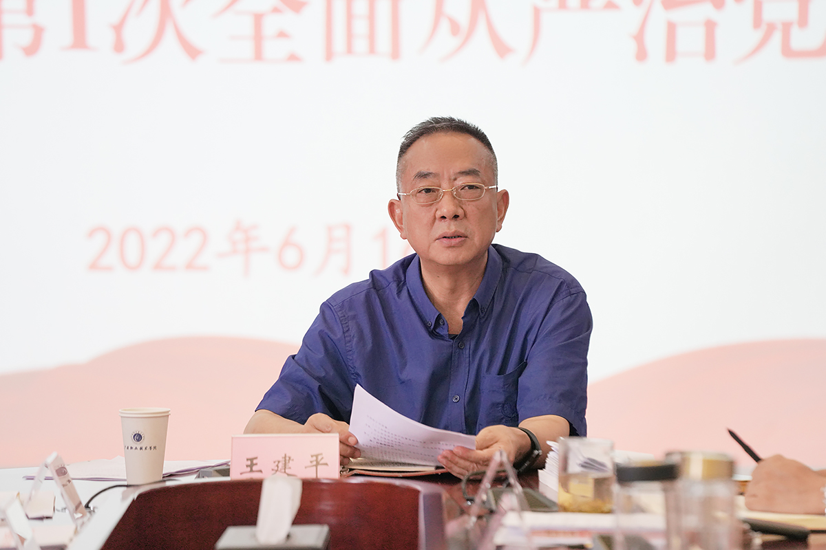 6月16日下午,学校党委书记王建平主持召开2022年第1次全面从严治党专题会议。会议分析研判了学校党风廉政建设形势;校党委领导班子成员汇报了履行党风廉政建设主体责任情况,分析分管领域党风廉政建设状况;听取了校属有关单位贯彻落实校党委2021年第2次全面从严治党专题会议精神的情况。党委副书记、校长王义全出席会议并作了讲话,校党委领导班子成员出席会议。