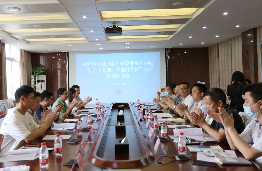 6月22日,南浔区人力社保局局长、党组书记石增中带队南浔区企业和广安区人社局党组成员、副局长兰建兵一行来校交流并开展“见习(实训)基地提升营”人才政策推介,学校党委委员、副校长袁祖洪陪同。