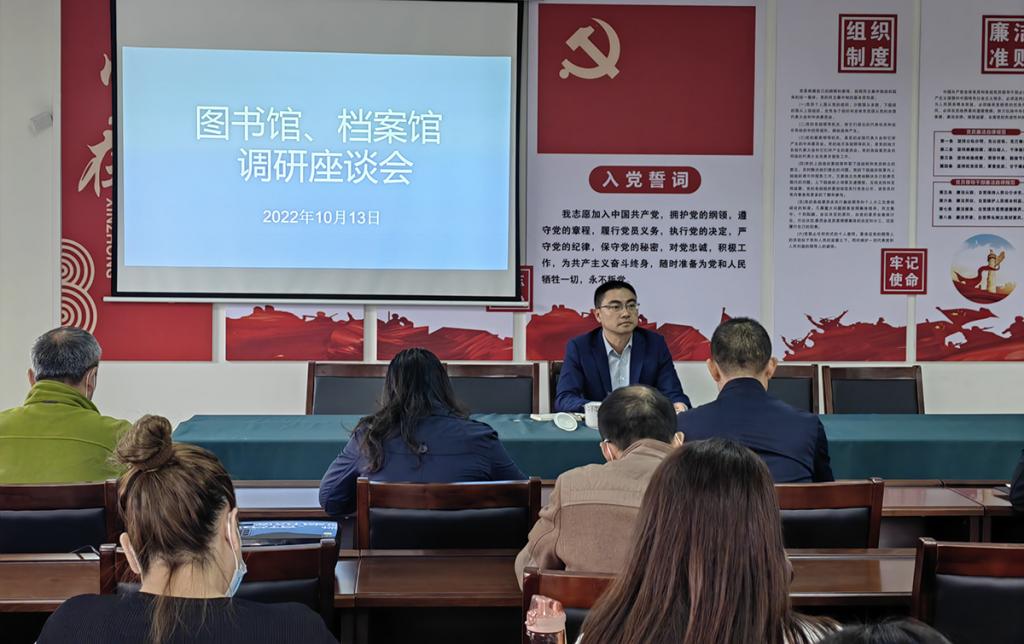 座谈会上,图书馆、档案馆馆长彭彤彦汇报了两馆的基本概况、工作亮点、存在问题与下一步工作打算。