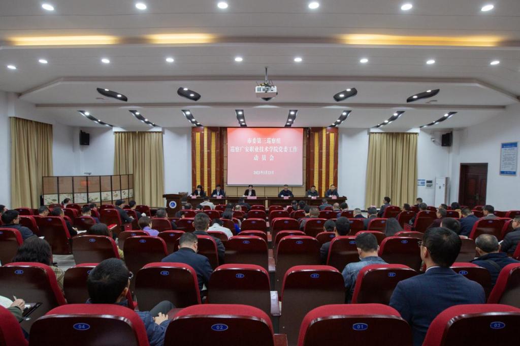 根据广安市委关于巡察工作的统一部署,2023年3月23日,六届广安市委第三轮第三巡察组巡察学校党委工作动员会召开。会前,市委第三巡察组组长祝松林主持召开与学校党委书记王冬霞的见面沟通会。动员会上,祝松林通报了巡察任务和工作安排,并就巡察工作提了要求,市委巡察办副主任夏建军代表市委巡察工作领导小组对做好此次巡察工作提出了明确要求,王冬霞主持会议并作表态发言。市委第三巡察组副组长钟勇出席会议。参加动员会的还有市委巡察办巡察专员、第三巡察组联络员胡倩,学校党委班子成员、中层正副职干部。
