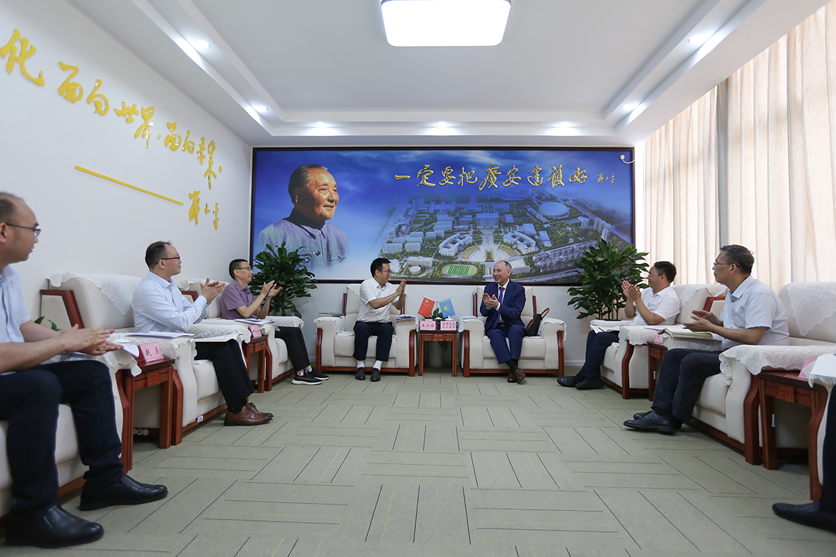 国际交流与合作处、教务处、经济管理学院、师范学院、土木工程学院、智能制造与汽车工程学院相关负责人出席了座谈会。会前,与会人员参观调研了学校留学生公寓、学生食堂、邓小平生平主题油画展(书法展)、郑才贵竹丝画帘技能大师工作室及工业机器人实训中心。