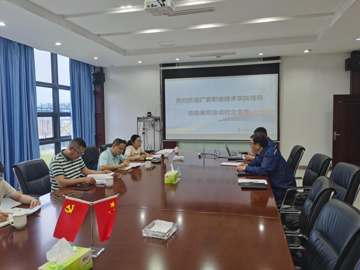 洽谈过程中,双方以提高人才培养质量、促进学生高质量就业和提升企业员工技能、学历等为主要内容,在前期工作的基础上进一步细化合作内容。袁驰介绍了学校未来发展规划及现有专业设置情况,并指出绿色化工是广安支柱产业,学校化工专业群的设置符合化工产业需要,希望通过校企深度合作,全方位推进优势互补、资源共享、人才共育。唐利平就合作具体内容进行了详细介绍,包括共建特色订单班、共建员工培训基地、共建学生实习就业基地、共培双师队伍、共建校企合作平台等。