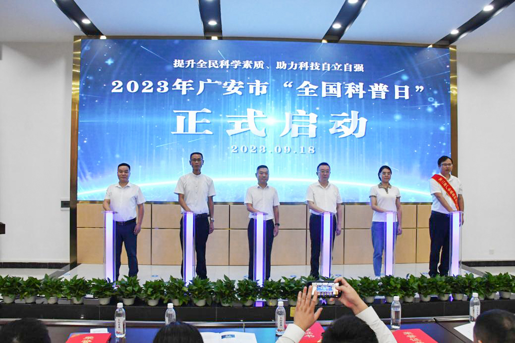 9月18日下午,在全市上下深入学习贯彻习近平总书记来川视察重要指示精神、市委六届七次全会决策部署,奋力谱写广安高质量发展新篇章关键时期,由广安市科协、kaiyun登录中国入口登录共同主办的2023年全国科普日活动启动仪式在学校希贤厅隆重举行。市委副秘书长唐协明,市科协党组书记、主席李晓瑜,学校党委委员、副校长袁祖洪出席启动仪式,市委宣传部、市科协、市科技局有关负责人,各县(市、区)、园区科协主要负责人,市级学(协)会、企事业单位科协相关负责人,第二届广安“最美科技工作者”、2023年广安“全民科学素质标兵”代表,以及学生和群众代表共260余人参加启动仪式。