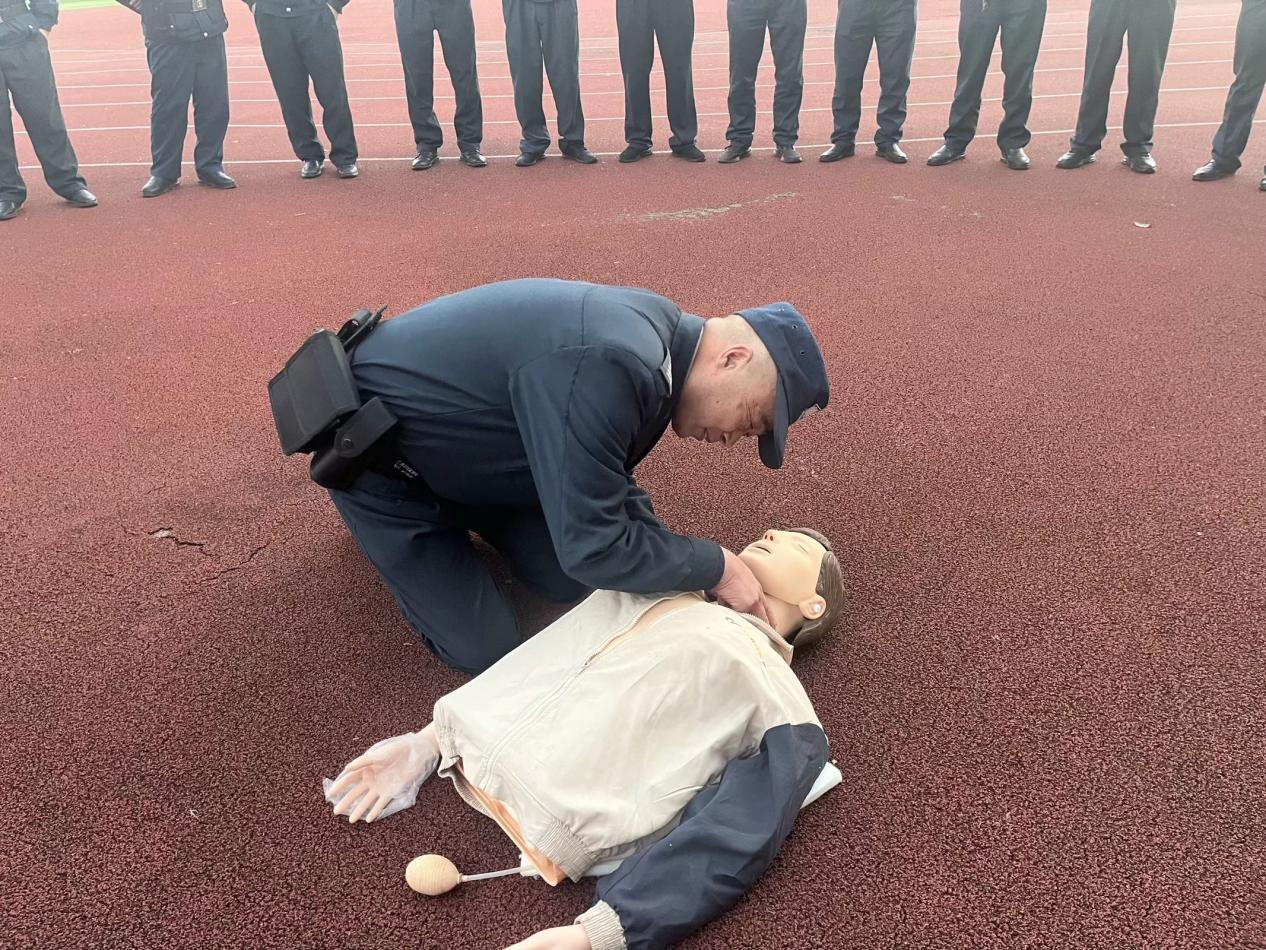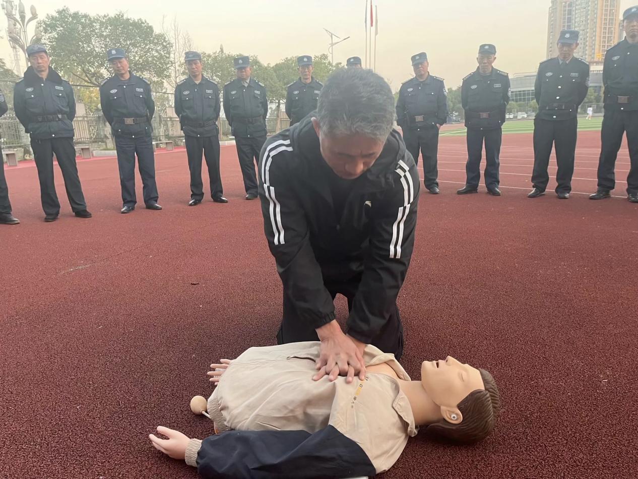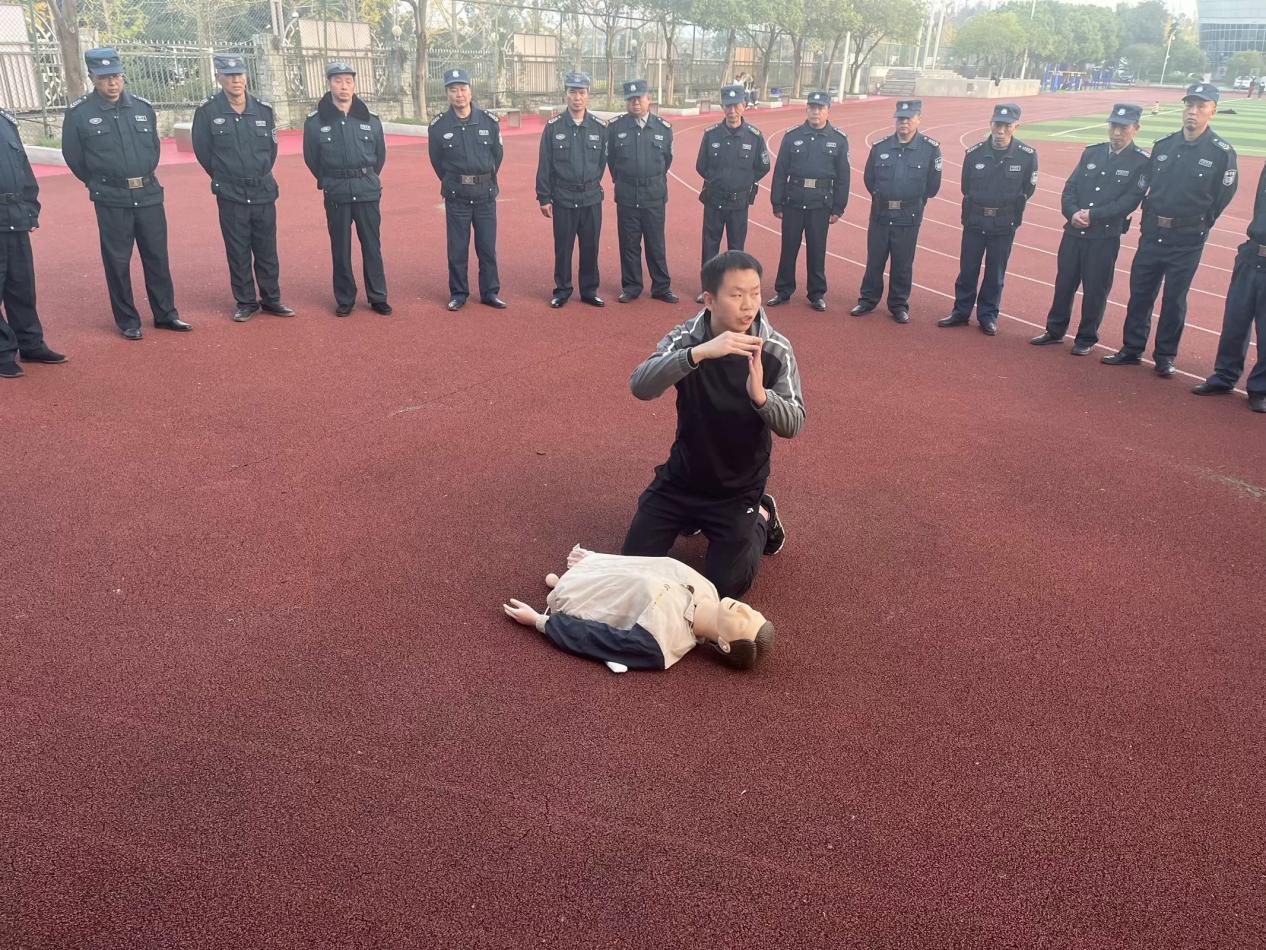 11月27日下午,保卫处组织全体保安在足球场开展了心肺复苏培训。四川广盾保安服务有限公司经理张浩现场为保安示范指导。