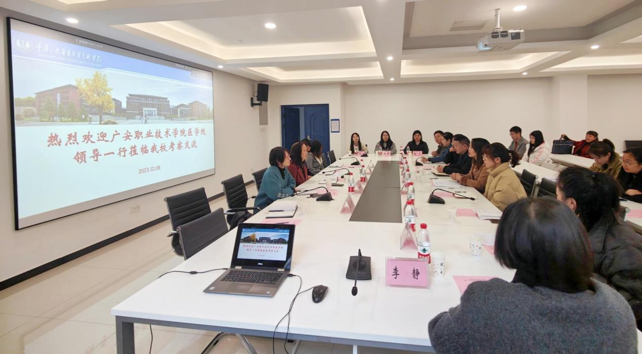 为进一步深入贯彻落实《四川省教育厅重庆市教育委员会广安市人民政府共建成渝地区双城经济圈教育协同发展试验区》相关精神,推动学校“广职融圈”工作。12月7日至8日,医学院院长杨书琴带队赴重庆三峡医药高等专科学校学习调研。