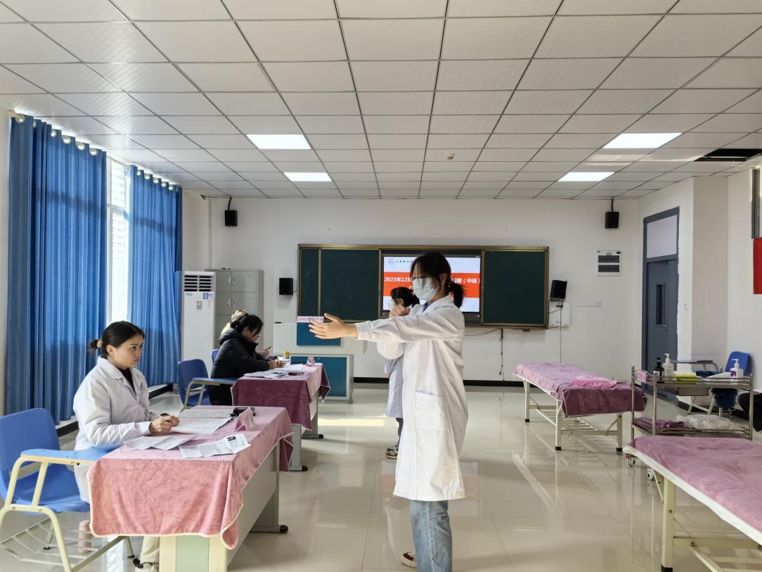 2023年12月23日,医学院成功开展并完成了“1+X”家庭保健按摩职业技能等级证书(中级)考评工作。本次家庭保健按摩职业技能等级证书(中级)考评由教育部认定的职业技能评价组织——济南阳光大姐服务有限责任公司负责全程监督与证书认定,医学院教学科研部负责考试组织,医学院专业教师担任技能考评员,2022级及2023级临床医学专业的40名学生参加了本次考试。