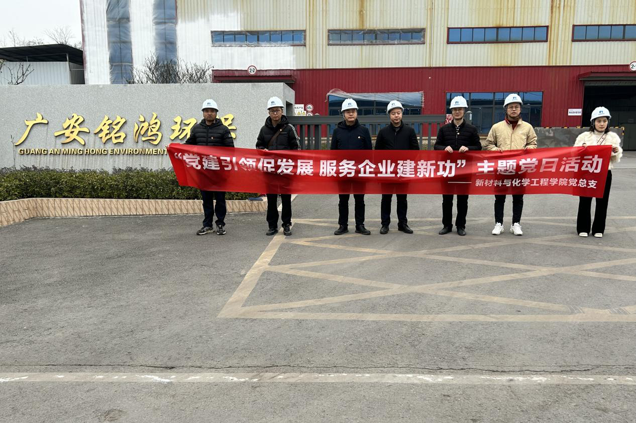 12月25日,新材料与化学工程学院党总支赴广安铭鸿环保科技有限公司开展“党建引领促发展,服务企业建新功”主题党日活动。学院全体党员教师参加了活动。