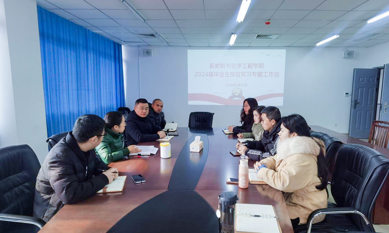 为进一步规范学生岗位实习工作,提升岗位实习质量,2月29日上午,新材料与化学工程学院召开了2024届毕业生岗位实习专题工作会。学院相关负责同志、专业负责人及全体辅导员参加了会议,会议由院长唐利平主持。