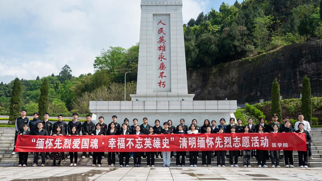 在清明节即将到来之际,为继承革命先烈遗志,弘扬民族精神,加强学生爱国主义教育。4月2日下午,在医学院学工部全体工作人员的带领下,50余名师生志愿者到广安市凤凰山烈士陵园开展了“缅怀先烈爱国魂·幸福不忘英雄史”清明缅怀先烈志愿活动。