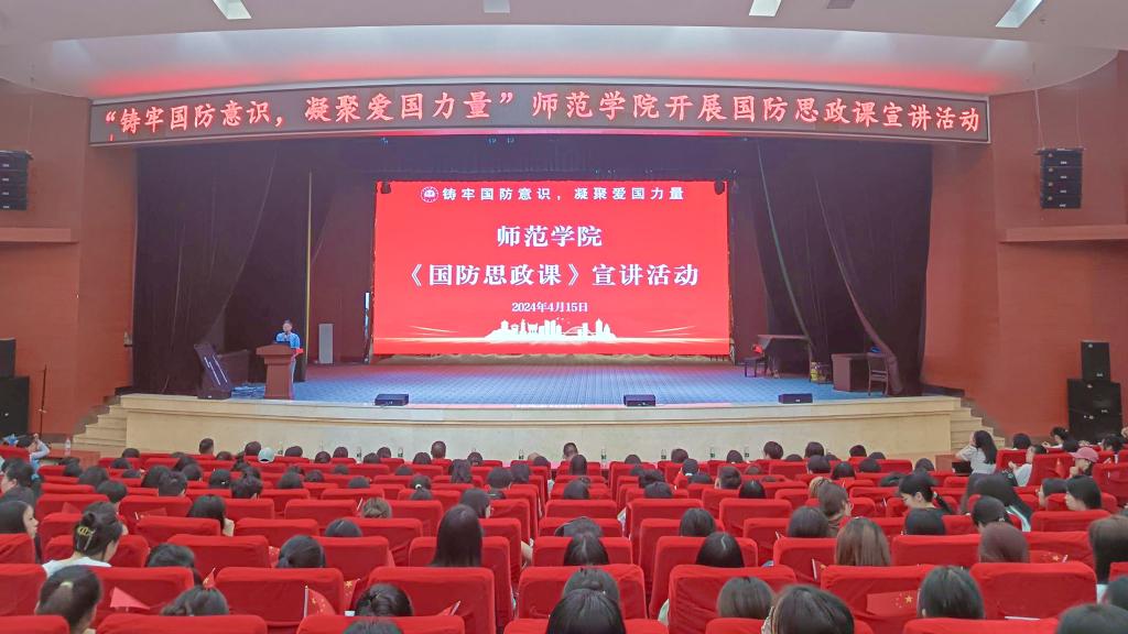 为深入实施时代新人铸魂工程,提升大学生的思想政治素质,4月15日晚,师范学院在杏坛开展了以“筑牢国防意识,凝聚爱国力量”为主题的国防思政课宣讲报告会。学院600余名师生参加本次活动。