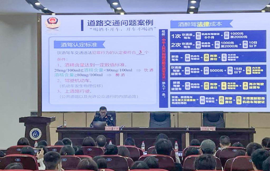 接下来,交警支队民警高萌为同学们上了一堂生动形象的交通安全警示课程,他讲解了哪些电动车辆必须要有驾驶证才能驾驶、交通安全高频事故原因等方面知识,并通过佩戴头盔与不佩戴头盔的事故现场对比,让交通安全知识入脑入心。