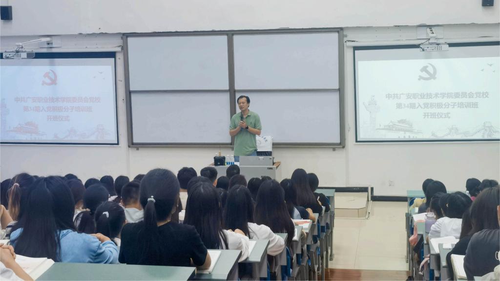在庄严的国歌声中拉开了开班典礼的序幕。随后,喻忠作开班动员讲话,通过分享他的入党初心,希望全体参培学员端正态度,正确认识参加入党积极分子培训的重要意义。他要求全体学员必须明确目标,努力提高入党积极分子培训学习效果,要充分利用这次难得的学习机会,通过系统的学习,从根本上了解党,从感情上热爱党,从行动上追随党,积极投身到推进党的建设新的伟大工程中。开班仪式结束后,张希以“沐红色洗礼,催砥砺奋进”为主题开始培训班第一讲,生动形象地讲述了中国共产党的指导思想和光辉历程。