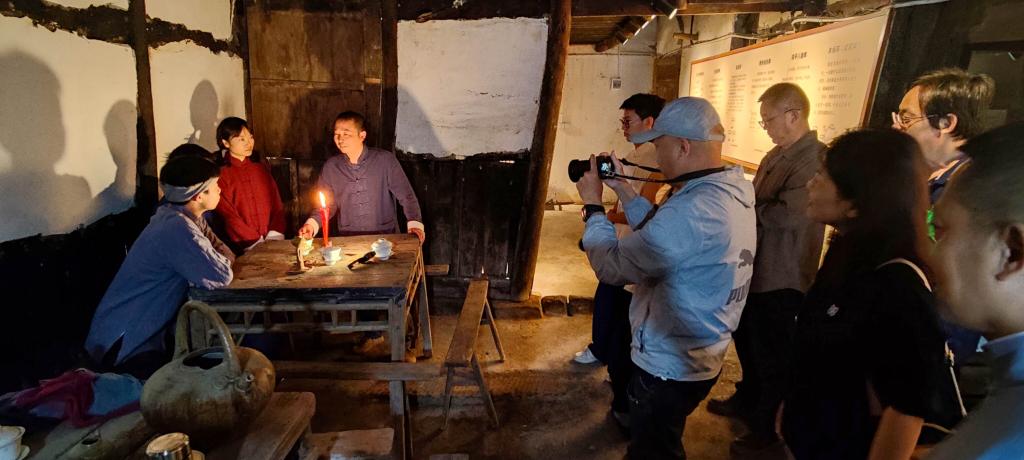 艺术家们走进萧家大院,唤醒革命记忆,从中汲取作品创作灵感。大家根据前期的作品构思初稿,组织模特装扮进行模拟实景拍摄,以寻找现场的真实感。活动现场,画家们灵活运用创作方法和表现技巧,反复推敲人物组合关系、空间关系以及色彩关系,反复调整现场实景的光影、构图与模特服装、化妆、道具运用等的结合,积极思考在本阶段油画作品创作中广安红岩英烈红色元素与符号的体现,以及中华民族精神和审美的深度展现。