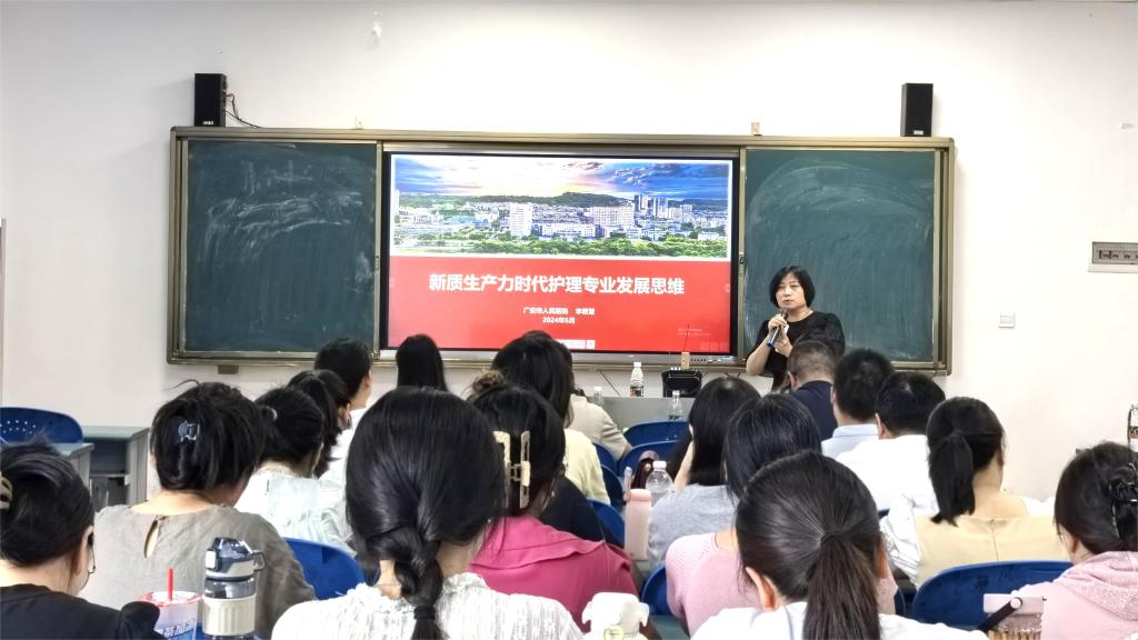 6月25日下午,医学院特邀广安市人民医院大内科护士长、内二病区护士长、第二党支部书记李君慧主任,在崇贤楼106室开展“新质生产力时代护理专业发展思维”学术讲座,学院全体教师参加讲座,讲座由医学院院长杨书琴主持。