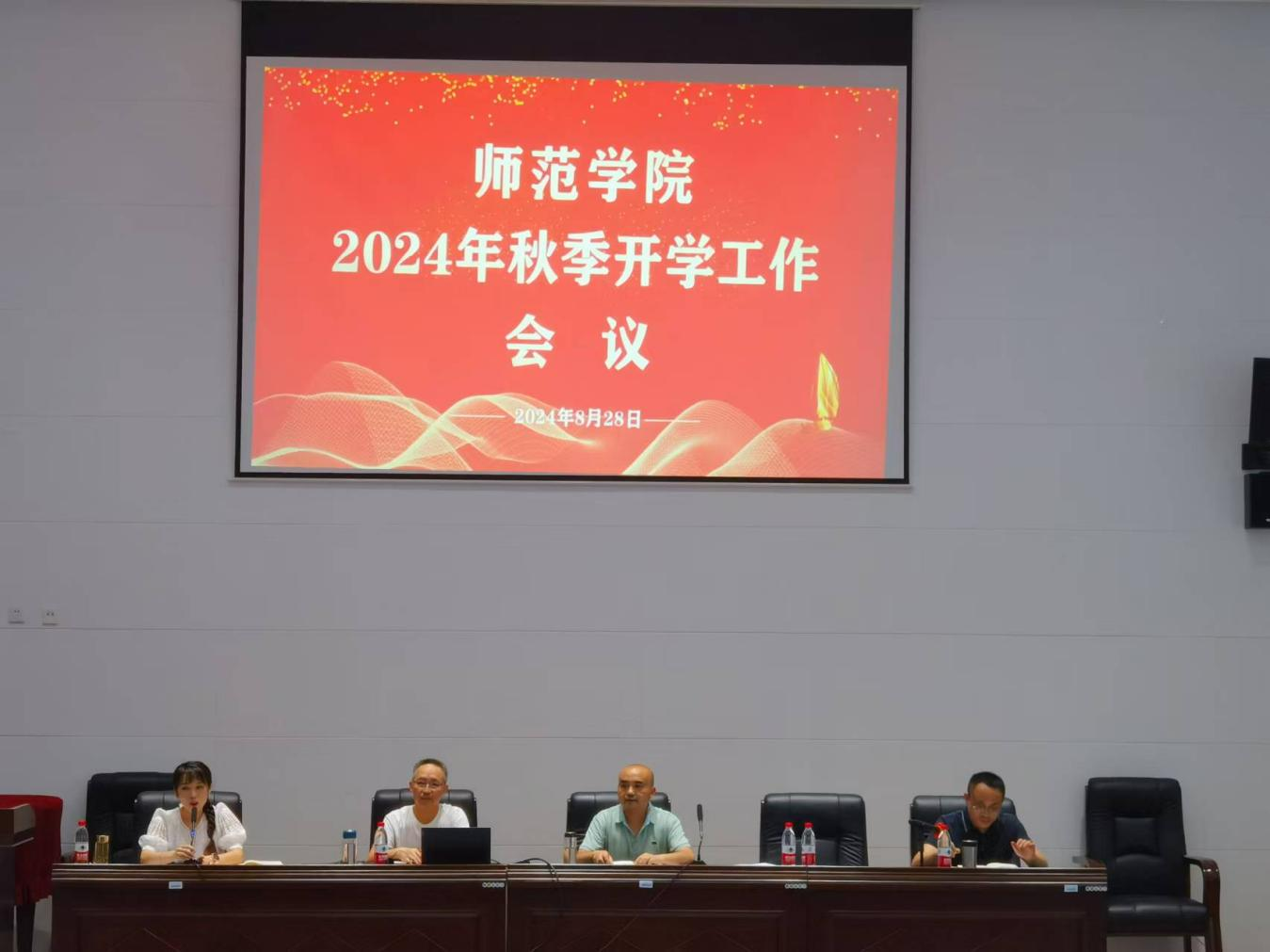 为更好地统筹和安排新学期各项工作,激励全体教职工以饱满的热情和昂扬的斗志开启新学期,8月28日下午,师范学院在岳秀楼翔凤厅召开了2024秋季学期开学教职工大会。会议由学院副院长贺雪萍主持,全体教职工参加了此次会议。