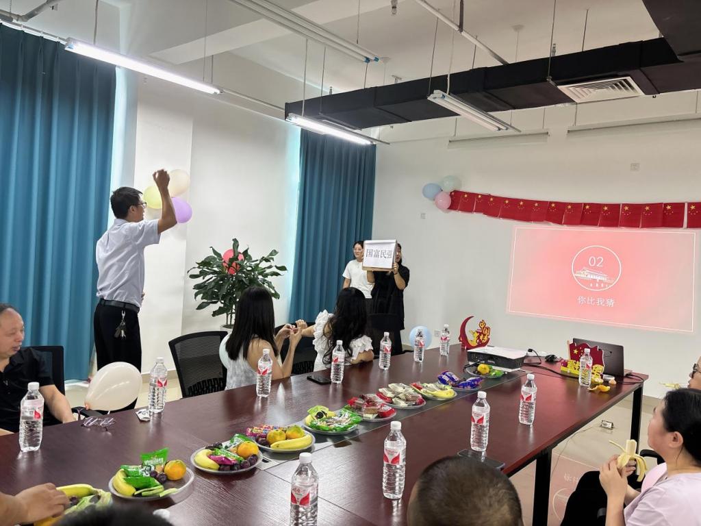 活动现场布置得温馨而富有节日气息,气球高高挂起,红旗飘扬,处处洋溢着浓厚的节日氛围。本次活动旨在通过丰富多彩的活动形式,让教职工们感受节日的欢乐,同时表达对祖国的热爱与祝福。