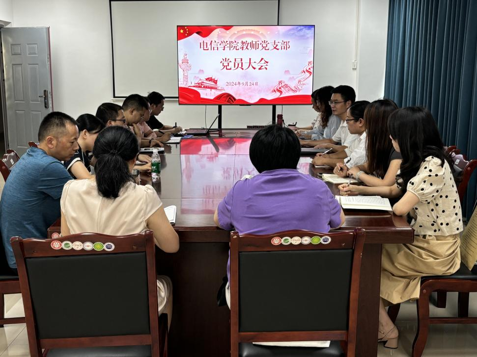 9月24日下午,电信学院教师党支部在学院三楼会议室召开全体党员会议,集中学习习近平总书记在党的二十届三中全会第二次全体会议上的重要讲话精神、习近平总书记在纪念邓小平同志诞辰120周年座谈会上的重要讲话精神、《中国共产党第二十届中央委员会第三次全体会议公报》《中共中央关于进一步全面深化改革 推进中国式现代化的决定》。学院党总支书记张义桥主持会议并作总结讲话。