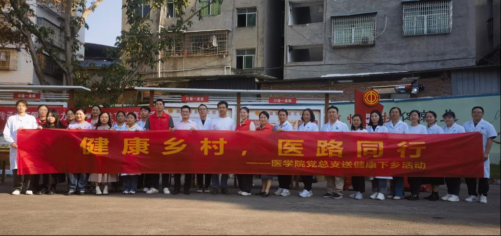 为助力乡村振兴,提升农村居民的健康素养,增强医学院师生的社会责任感和实践能力,在学校统战部统筹安排下,10月15日,医学院党总支前往武胜县万隆镇马道村、宝箴塞镇农林村开展“送健康下乡”活动。