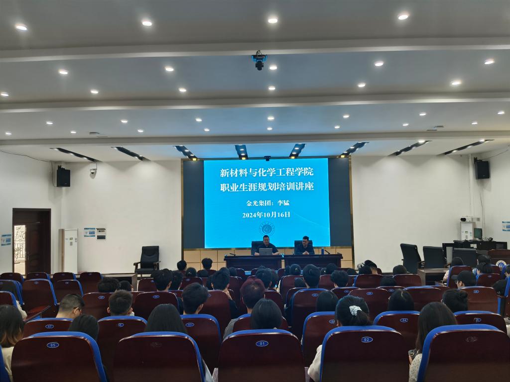 为帮助学生明确职业目标、做好职业规划,增强自我认知能力和竞争力,进一步提升就业创业指导质量和水平,10月16日上午,新材料与化学工程学院于明德楼先圣厅成功开展“企业家进课堂”职业生涯规划培训讲座,本次讲座由金光纤维(江苏)有限公司人力资源总监张云飞主持,招聘经理李猛主讲,学院2022级全体同学参加讲座。