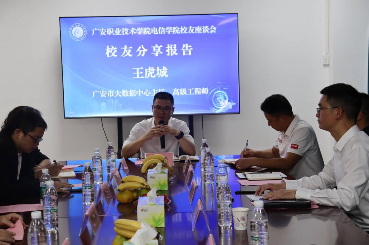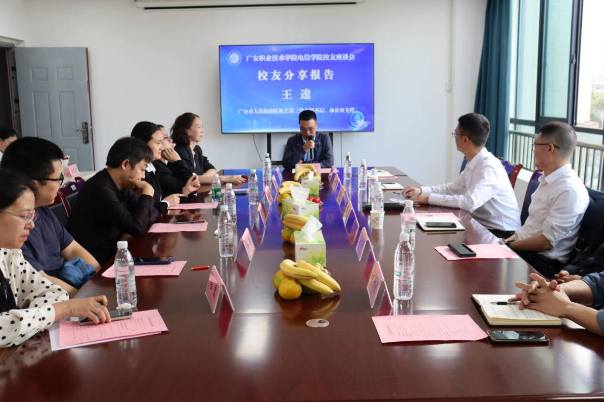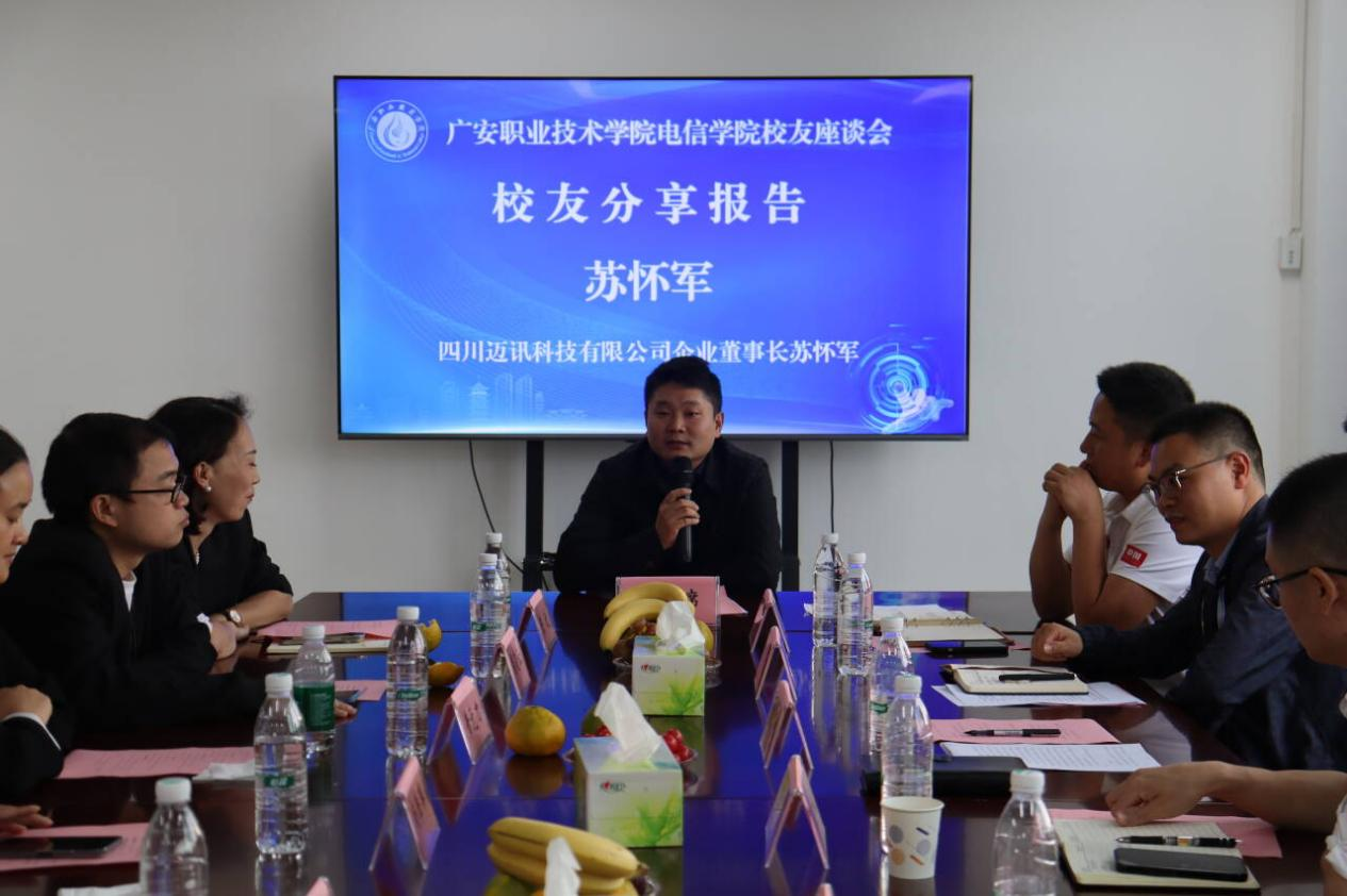 百年历程春风化雨,二十春秋桃李满园。在学校举行高质量发展大会之际,10月18日,电信学院召开高质量发展校友座谈会。广安市大数据中心主任、高级工程师王虎城,广安市人民检察院机关第三党支部书记、办公室主任王逵,四川迈讯科技有限公司企业董事长苏怀军等校友回校参加座谈并作分享报告。会议由学院党总支书记张义桥主持。学院领导、全体辅导员、教师代表、高年级学生代表参加座谈。