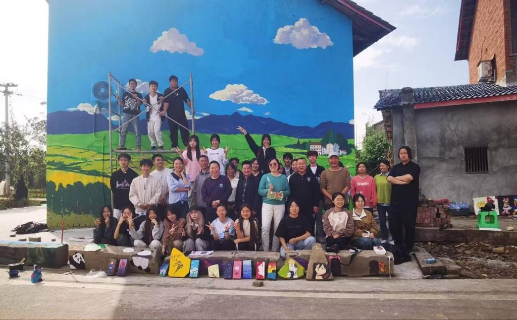 本次艺术采风活动,将艺术创作与乡村振兴紧密结合,学院组织专业教师团队带领书画艺术专业30余名学生开展“留住乡愁”乡村公益墙绘暨艺术采风活动,免费为村民绘制大型“看得见山,望得见水,记得住乡愁”主题的墙绘及多幅农家小景装饰画,在镇政府相关领导的指导下,有序顺利的开展了绘制工作,其间得到村民的大力支持和称赞,有效提升了地域文化知名度,促进了乡村农旅融合与乡村振兴的“金色”产业发展。同时,活动还特设公益课堂,邀请当地儿童参与艺术创作,激发了他们对美的追求和创造力,为乡村文化振兴贡献了教育力量。