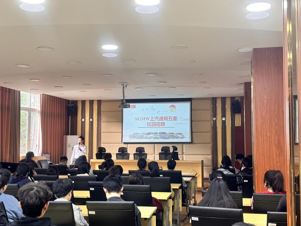 11月5日下午,电信学院在九思楼209会议室举行知名企业招聘宣讲活动。上汽通用五菱汽车股份有限公司重庆分公司、舜宇集团有限公司、宁波环球广电科技有限公司三家知名企业到场招聘宣讲,学院100余名2025届毕业生到场认真听取宣讲,主动了解企业需求,并积极参与应聘。
