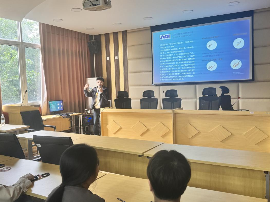 舜宇集团有限公司招聘负责人则重点介绍了公司在光学、自动化以及智能硬件领域的领先技术和成就,以及公司在智能制造和物联网技术方面的布局与规划。他表示,舜宇集团正在大力推动全球化战略,提供了多个研发、技术支持及管理岗位,欢迎同学们加入该行业发展。