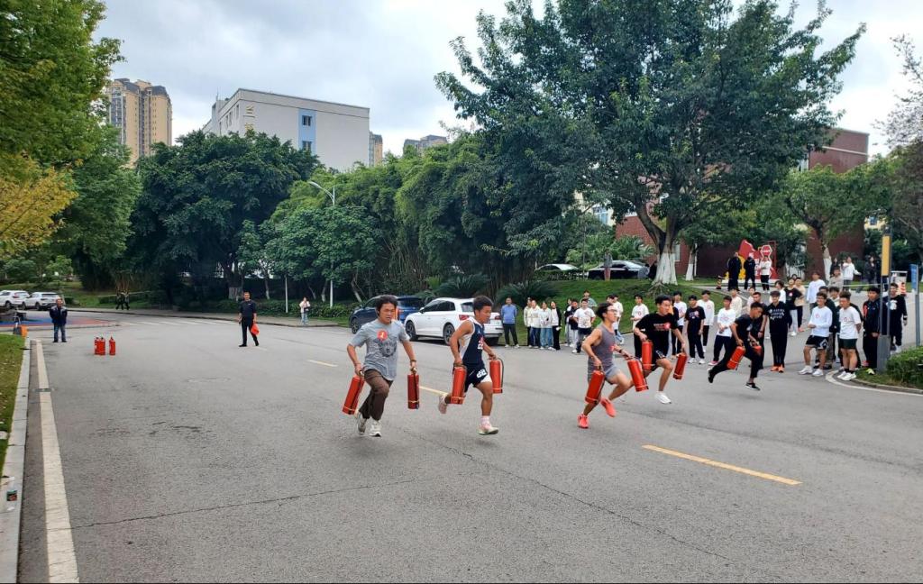 开幕式结束后,赓即举行消防运动会,本次消防运动会比赛项目为单人运送灭火器、5人室内消火栓连接消防水带灭火、往返跑接力灭火比赛,全校共9个学院各选派31名同学参赛,通过激烈角逐,医学院、新材料与化学工程学院分别获得往返跑接力灭火和5人室内消火栓连接消防水带灭火比赛第一名,师范学院学生谢正敏和电子与信息工程学院学生肖崇娅分别获得单人运送灭火器比赛第一名。