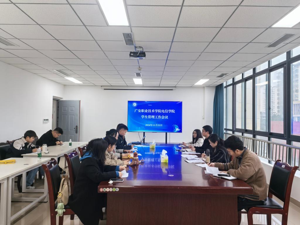 11月21日上午,电信学院召开2024年秋季学期期中学生工作会议,集中学习有关文件和会议精神,安排学生公寓安全与卫生工作,总结上半期学生工作,分享工作经验,查找问题和不足,研究制订整改措施。会议由党总支书记张义桥主持。