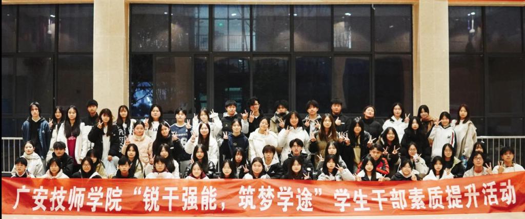 为进一步加强学生干部队伍建设,提升学生干部的综合素质,广安技师学院于12月3日下午在格致楼一楼大厅组织开展了“锐干强能,筑梦学途”学生干部素质提升活动。学院招生与学生工作部全体成员、全体班主任、78名学生会和团委干事参加本次活动。
