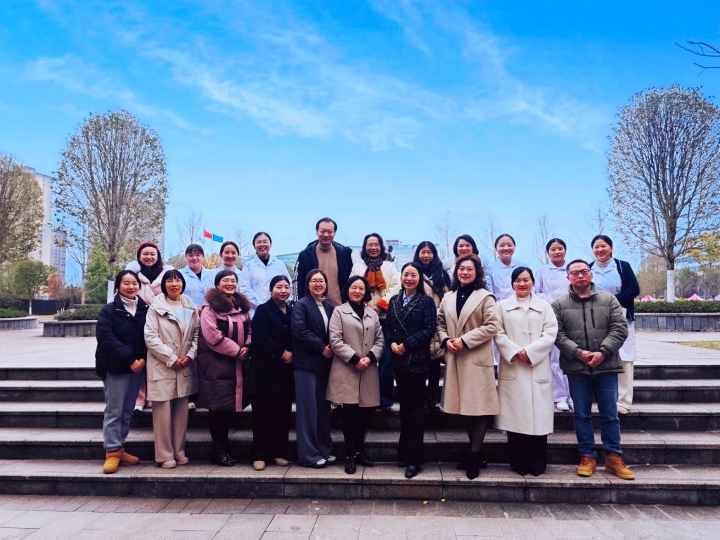 在明辉楼118会议室和医学院相关领导举行交流座谈会,医学院院长杨书琴介绍与会人员并致辞,杨书琴对三家合作医院护理专家的到来表示了热烈的欢迎和衷心的感谢,并强调了护理实践技能对于未来医护人员职业生涯的重要性。