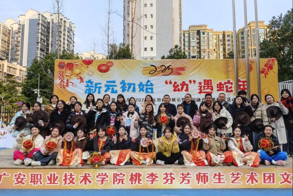 12月27日,师范学院“桃李芬芳”师生艺术团与广安市第五幼儿园携手开展院园融合成果展演活动。学校党委委员、副校长冉嘉洛,学院全体领导及50余名师生参加了本次活动。