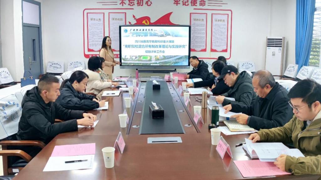 12月31日上午,四川省教育厅教育科研重大课题“高职院校混合所有制改革理论与实践研究”结题评审工作会在医学院如期举行。会议邀请了来自省、市不同部门的5位知名专家组成课题评审专家组,四川省教育科学研究院派专人进行评审指导、监督,广安市社会科学界联合会主席杨雪梅任评审组长并主持会议。