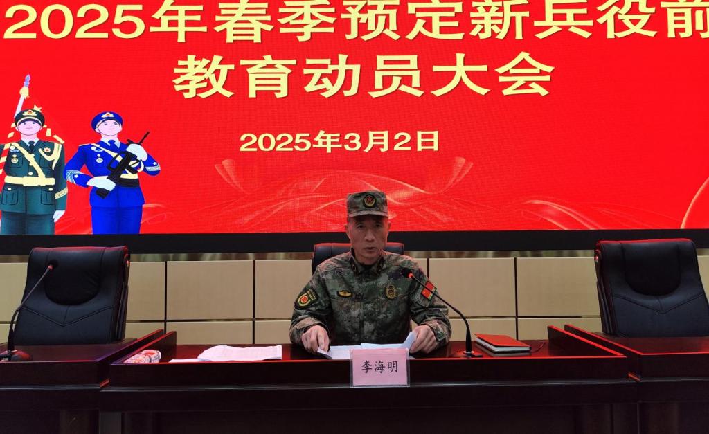 2025年春季,kaiyun官网应征学生通过体检、政考、体测的层层选拔,最终49名学子入围2025年春季预定新兵役前教育,为了让学子们全身心投入到此次役前教育中去,武装部于3月2日上午在希贤厅专题召开了2025年春季预定新兵役前教育动员大会,会议由学校武装部部长、保卫处处长李海明组织。