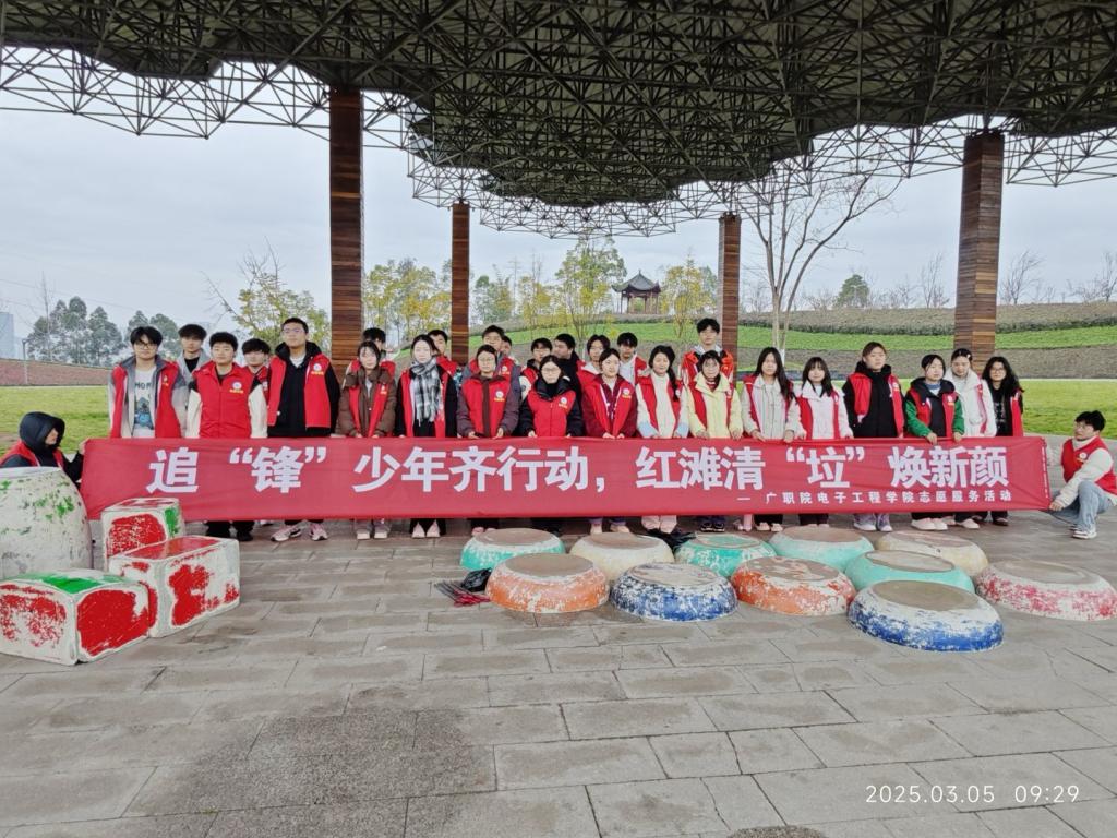 为弘扬雷锋精神,践行环保理念,3月5日,电信学院团学联组织30名共青团员及学生代表,在渠江红滩音乐公园开展“追‘锋’少年齐行动”志愿服务活动。此次活动以清理垃圾和环保宣传为主要内容,旨在通过实际行动倡导环保意识,营造干净整洁的公共空间,为社区居民创造更加舒适的生活环境。