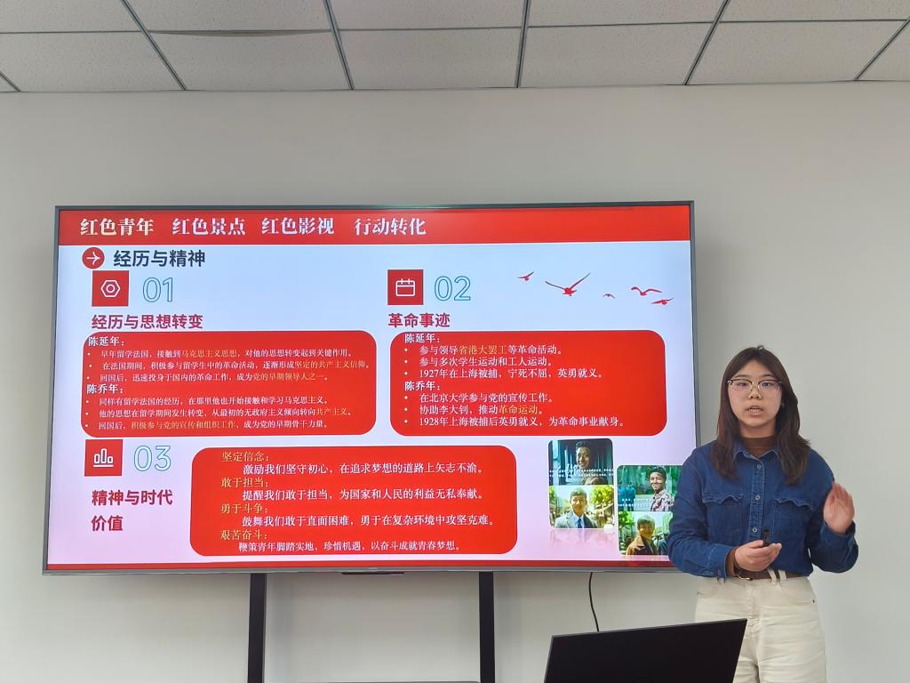 活动现场气氛热烈而庄重,同学们围绕红色故事、红色人物、红色景点、红色书籍等主题展开分享。每位同学借助精心制作的PPT辅助展示,声情并茂地再现了一段段红色历史和一个个感人至深的革命事迹,仿佛将听众带回了那个烽火连天的年代,深入诠释了他们对红色文化的深刻理解,充分表达了对革命先辈的崇敬之情。