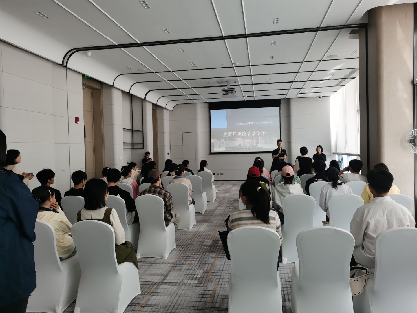 在酒店方的精心安排下,学生们依次参观了酒店的前厅、客房、餐饮、会议中心及员工生活区等,近距离感受了希尔顿酒店的企业文化、服务标准与现代化管理流程。参观结束后,酒店领导与学生们举行了座谈交流。人力资源总监Daniel以“从实习生到管理者”为主题,分享了酒店行业人才晋升路径,并耐心解答了学生关于实习内容、技能要求等方面的疑问。学生们积极参与互动,分享了参观心得与职业规划,10余名同学明确表达了到希尔顿酒店顶岗实习的意向。