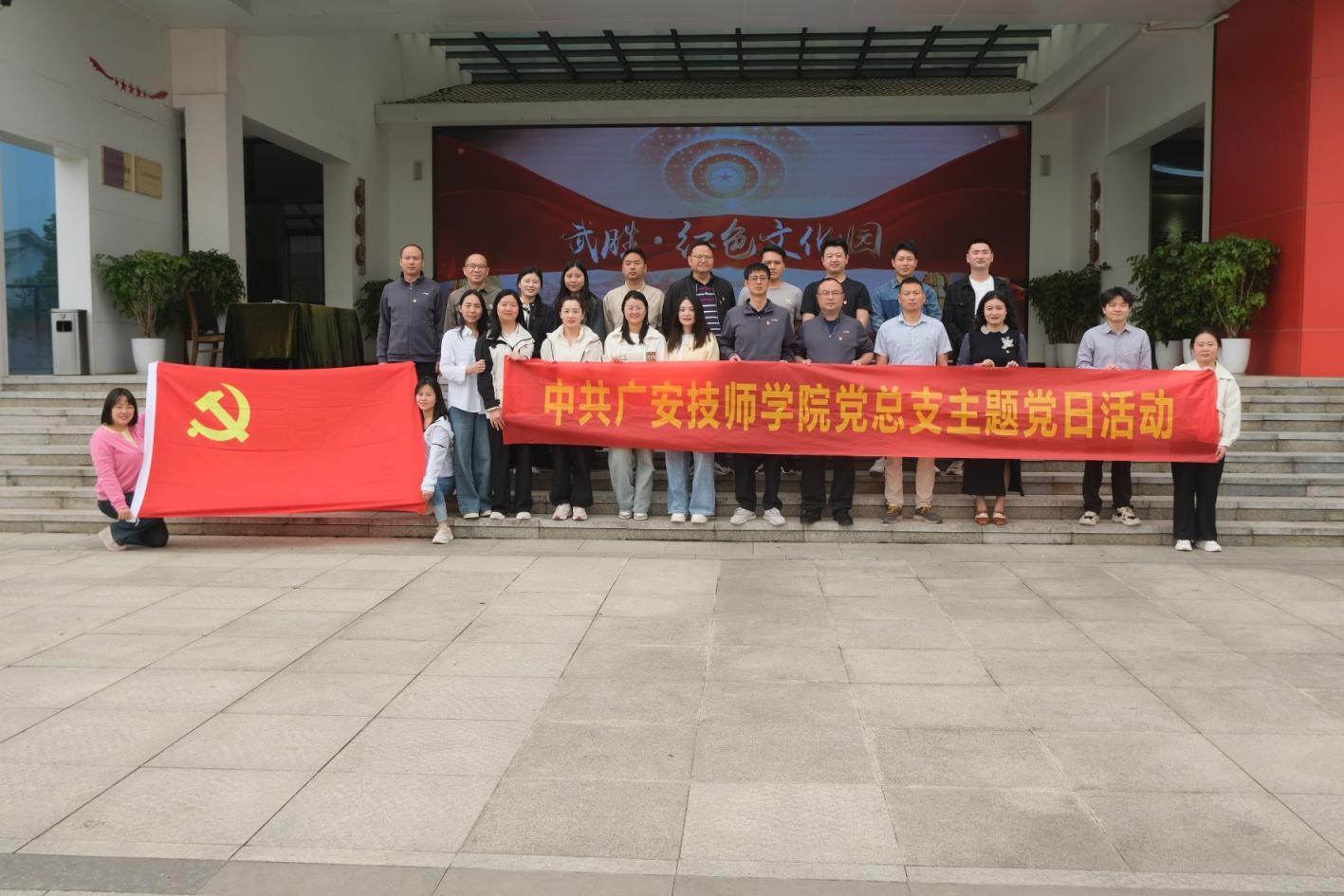 为深入学习贯彻习近平新时代中国特色社会主义思想,进一步加强爱国主义教育,4月12日上午,广安技师学院党总支组织全体党员开展以“党旗指引方向,红色点亮初心——走进红色记忆,追寻信仰之光”为主题的党日活动。